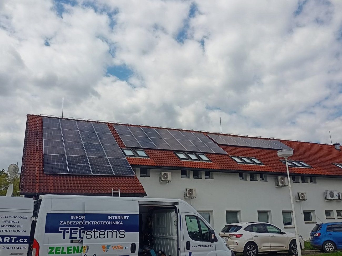 Solární panely o výkonu 49,50 kWp FVE byly umístěny na střechu dodavatele výrobních služeb pro elektronický průmysl v Pardubickém kraji.