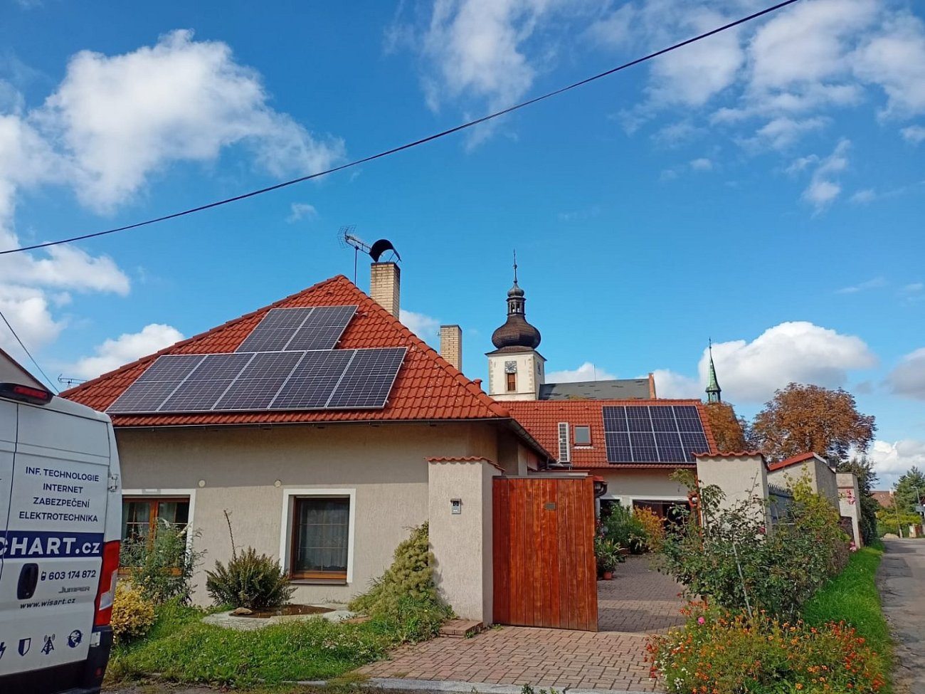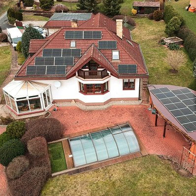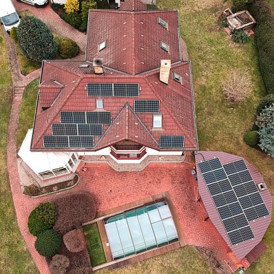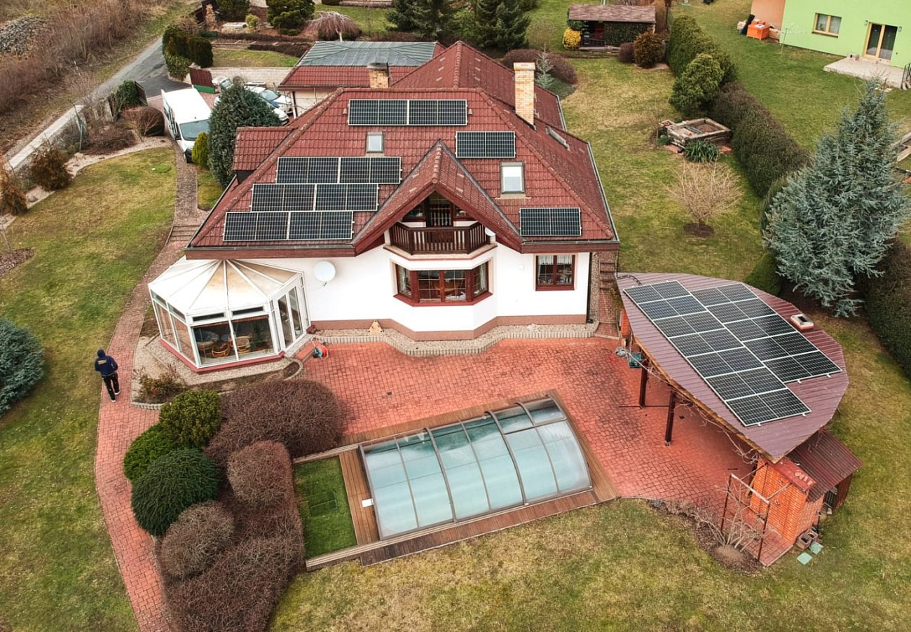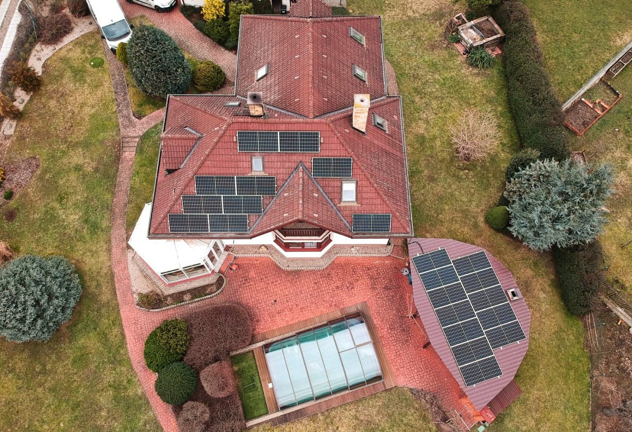 Solární panely o výkonu 10 kWp FVE byly postaveny s akumulací na střeše rodinného domu v Kutné Hoře.