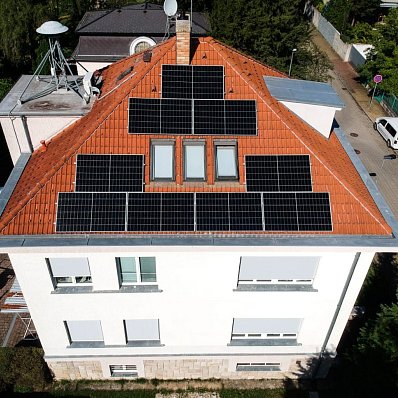 Solární panely o výkonu 5,355 kWh FVE byly umístěny na střechu rodinného domu v Praze 9 v Klánovicích.