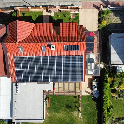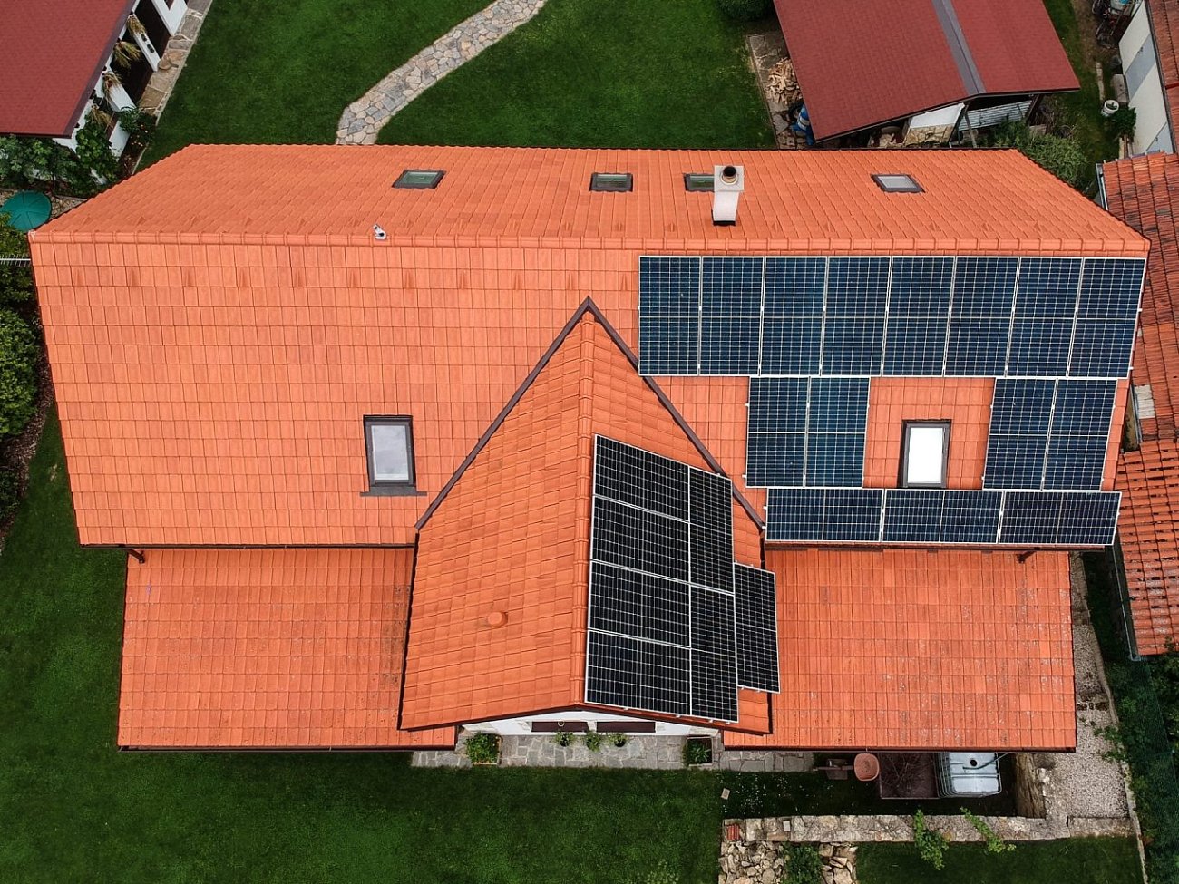 Solární panely o výkonu 9, 9 kWp FVE byly umístěny na střechách rodinných domů v Praze.